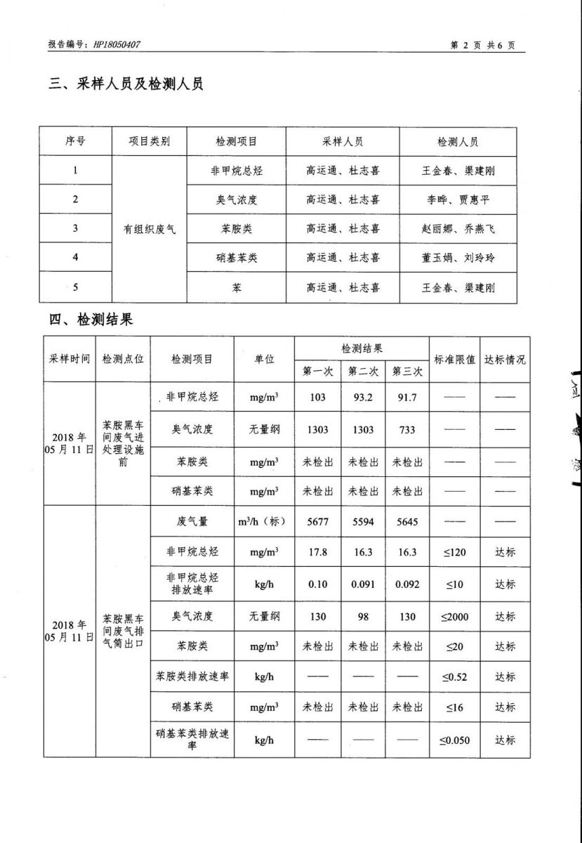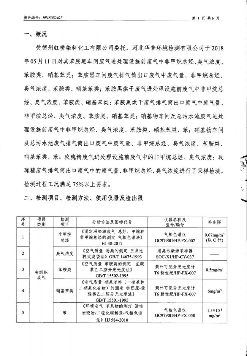 德州虹橋染料化工有限公司VOC檢測報告